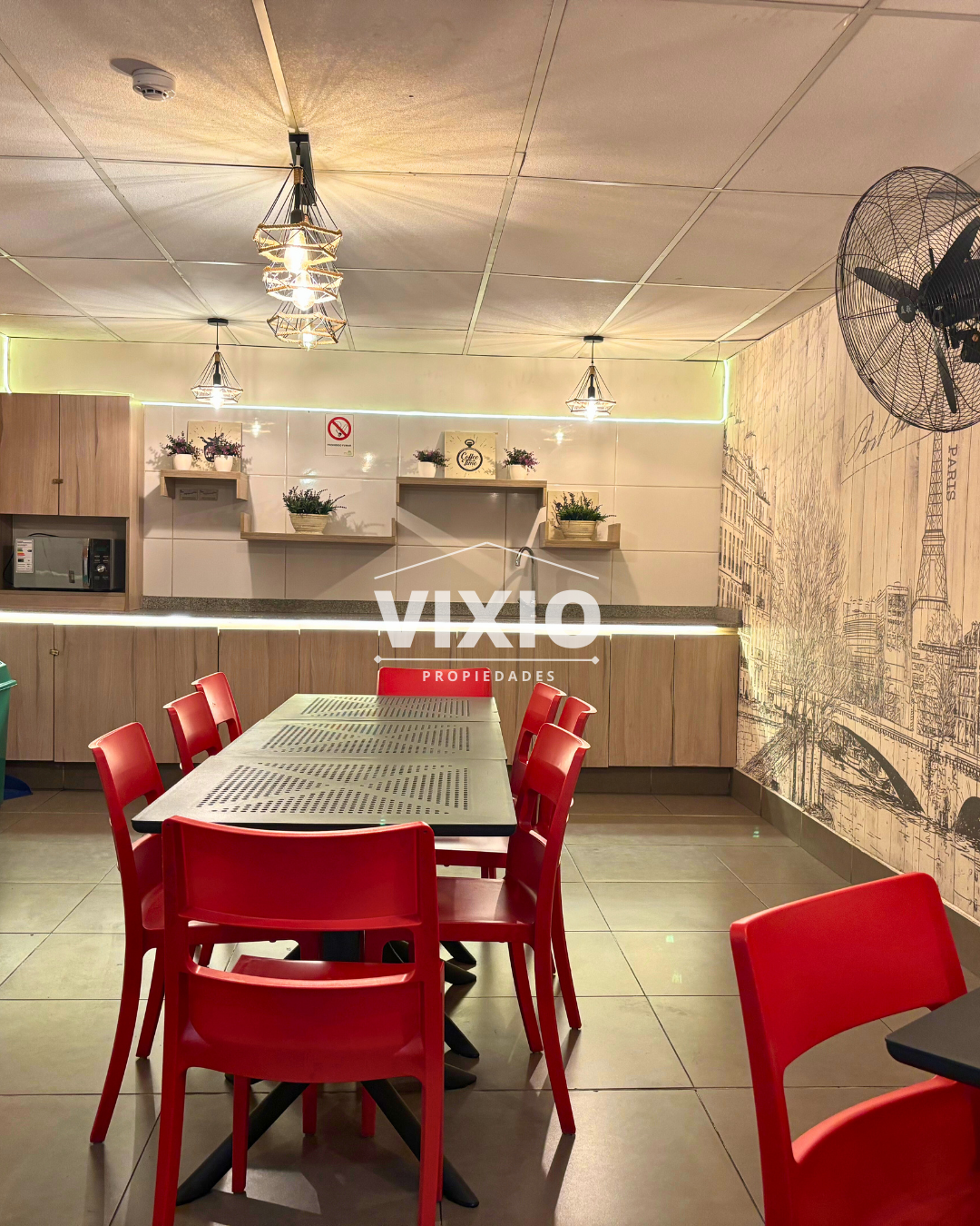 - Gran cantidad de gabinetes para orden y almacenamiento.